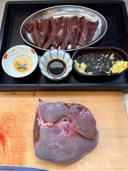 12:30 肝臓はレバ刺し!⚠️ジビエの生食はダメです。必ず75度以上で15分以上加熱調理してから食べましょう。